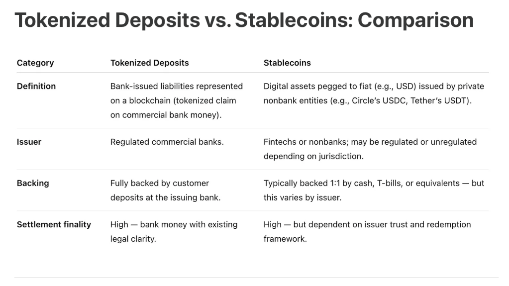 As the GENIUS bill provides a framework for stablecoins to much great fanfare, the chatter around the term “tokenized deposits” is returning. After the passage of GENIUS, there has been much speculation and hype around banks launching their own stablecoins and almost every bank executive got asked about this during their Q2 earnings calls. Interestingly, the response has generally been some form of “…sure stablecoins are interesting, but tokenized deposits are where the real opportunity lies for banks.”